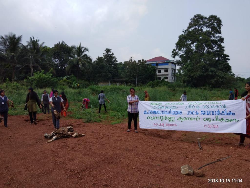 മഹാത്മാ ഗാന്ധിയുടെ 150 -മത് ജന്മവാർഷികത്തോടനുബന്ധിച്ചു കേരളം കാർഷിക സർവകലാശാല ആസ്ഥാനത്ത് തീവ്ര ശുചീകരണ പ്രവർത്തനം നടത്തി. അന്തർദേശീയ ഗ്രാമീണ വനിതാ ദിവസമായ ഒക്ടോബർ 15 നാണ് കേരള കാർഷിക സർവകലാശാല മഹാത്മാ ഗാന്ധിയുടെ 150 -മത് ജന്മ വാർഷികത്തിന് തുടക്കം കുറിച്ചത്. തീവ്ര ശു ചീരണ പ്രവർത്തനത്തിന്റെ ഉത്ഘാടനം ബഹു .കേരള കാർഷിക സർവകലാശാല വൈസ് ചാൻസലർ ഡോ. ആർ. ചന്ദ്രബാബു നിർവ്വഹിച്ചു. ഭാരതീയ കാർഷിക മേഖലയിൽ സ്ത്രീകൾക്കുള്ള പ്രാധാന്യത്തെക്കുറിച്ചും ഗാന്ധിജിയുടെ ഉദാത്തമായ ശുചിത്വ കാഴ്ചപ്പാടുകളെക്കുറിച്ചും അദ്ദേഹം സംസാരിച്ചു. പരിപാടിയുടെ ഭാഗമായി ഗാന്ധിജിയെയും അദ്ദേഹത്തിന്റെ ദർശനങ്ങളെയും കുറിച്ച് സെമിനാറുകൾ , വർക്ക് ഷോപ്പുകളും ക്വിസ് മത്സരങ്ങൾ സംഘടിപ്പിക്കുമെന്നും അദ്ദേഹം പറഞ്ഞു. ഉത്ഘാടന സമ്മേളനത്തിന് കേരളം കാർഷിക സർവകലാശാല ഗ്രീൻ പ്രോട്ടോകോൾ നോഡൽ ഓഫീസർ ഡോ. എ. പ്രേമ സ്വാഗതവും, ഹോർട്ടികൾച്ചർ എൻ,എസ് .എസ് കോർഡിനേറ്റർ ഡോ. ബെറിൻ പത്രോസ് നന്ദിയും പറഞ്ഞു.